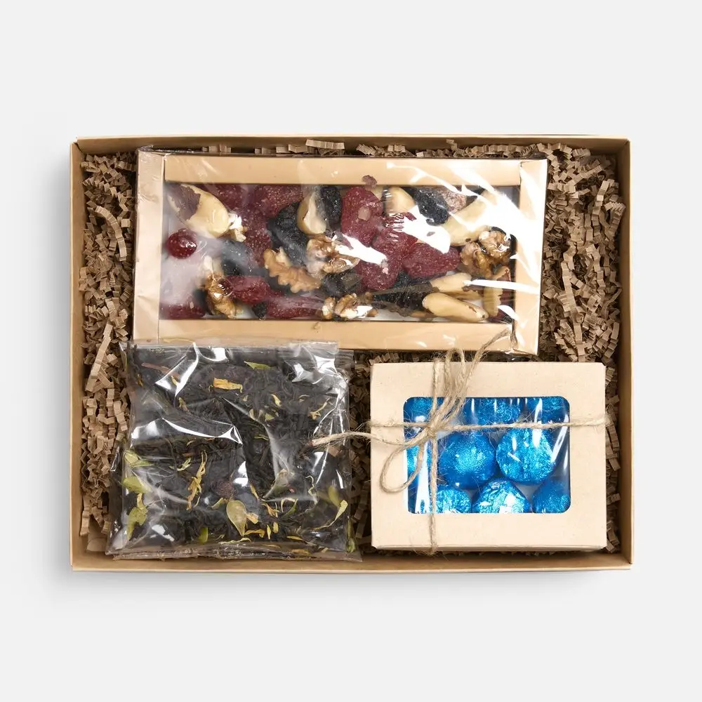 Иногда для счастья нужно совсем немного: тепло близких людей рядом и кружка теплого любимого напитка в руках для сладкого перерыва. Набор Quality Time создан именно для таких уютных моментов: чтобы время определенно было проведено с пользой, достаточно на домашние посиделки захватить с собой комплект из ароматного чая, полезной орехово-цукатной смеси и благородного грильяжа.