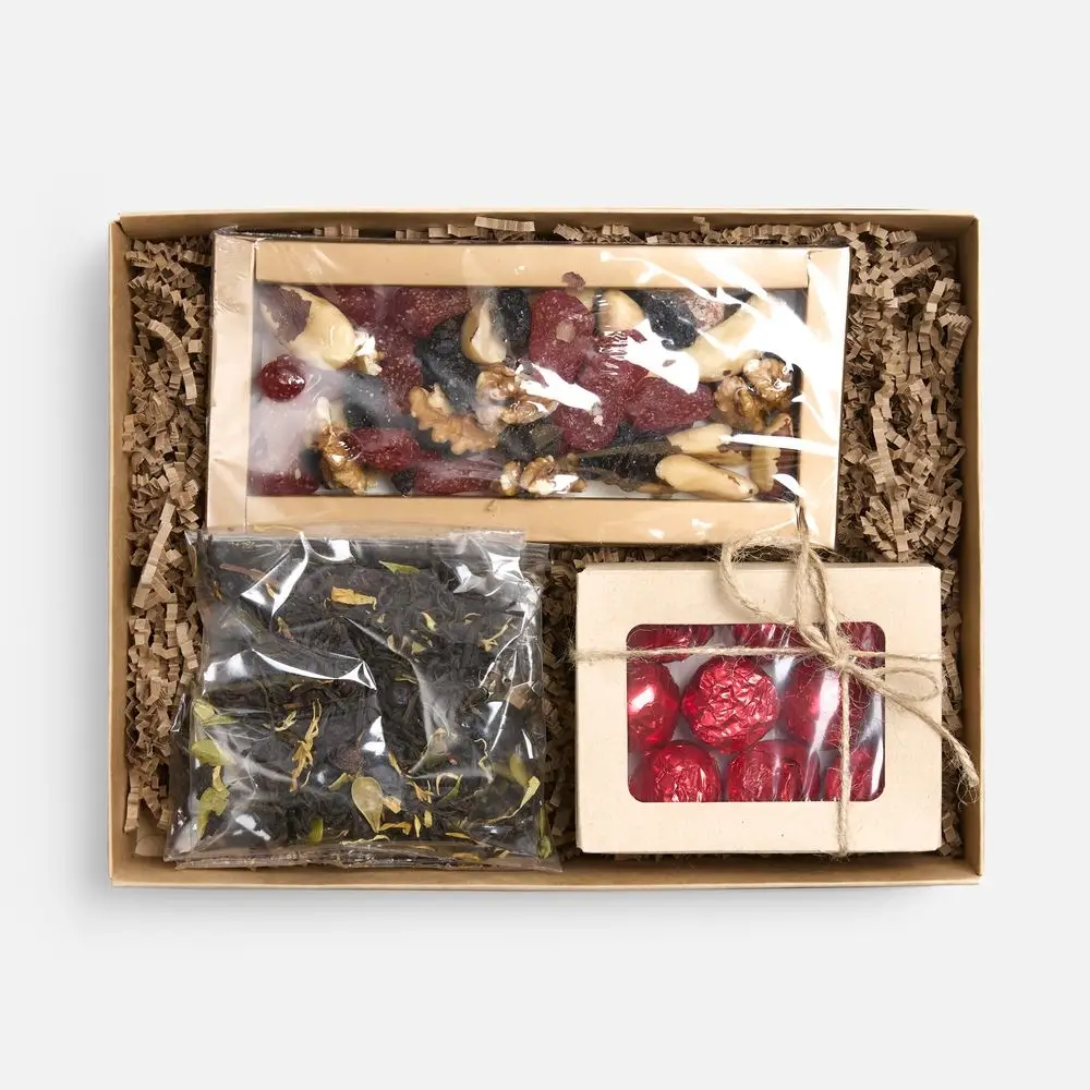 Иногда для счастья нужно совсем немного: тепло близких людей рядом и кружка теплого любимого напитка в руках для сладкого перерыва. Набор Quality Time создан именно для таких уютных моментов: чтобы время определенно было проведено с пользой, достаточно на домашние посиделки захватить с собой комплект из ароматного чая, полезной орехово-цукатной смеси и благородного грильяжа.