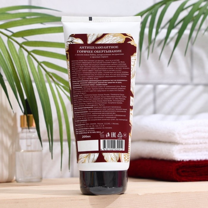 Шоколад может быть полезен для фигуры, если он в составе шоколадного обёртывания Anti-Cellulite Chocolate Program Hot Body Wrap. Пока вы будете наслаждаться невероятным запахом шоколада, ваше тело будет получать максимум пользы натуральных компонентов. Экстракт какао запустит процесс регенерации клеток, а экстракт зелёного кофе окажет лифтинг - эффект. Красный перец в составе улучшит метаболизм и микроциркуляцию крови, способствуя сжиганию жировых тканей. Фантастический уход не только для тела, но и для души возможен прямо у вас дома с горячим шоколадным обёртыванием Anti-Cellulite Chocolate Program Hot Body Wrap.