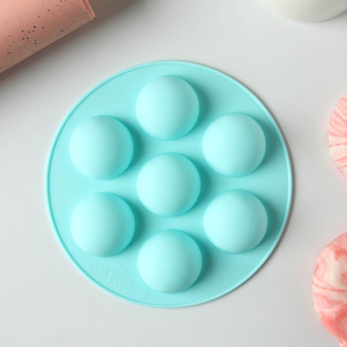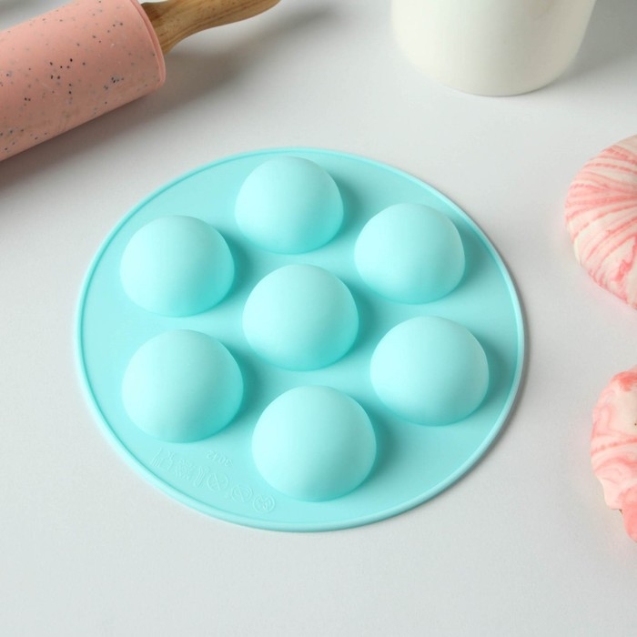 Форма для муссовых десертов и выпечки из 2 частей Доляна «Шарики», силикон, 13×8,5×3 см, 7 ячеек (d=1-3,5 см), цвет белый