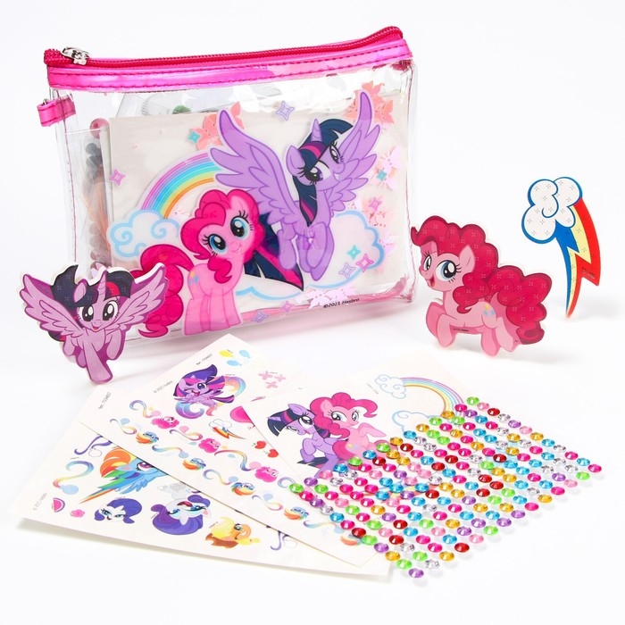 Набор с прядями, тату, стразами, в сумочке «Набор красоты для творчества» My little pony