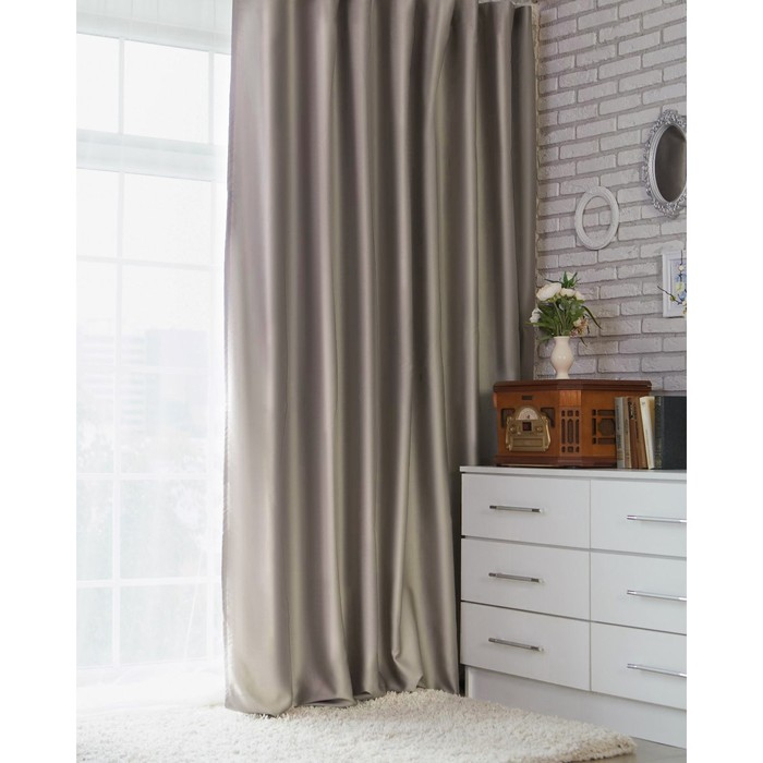 Штора портьерная «Этель» 250×265 см, двусторонний блэкаут, цвет Серебряный, пл. 240 г/м², 100% п/э