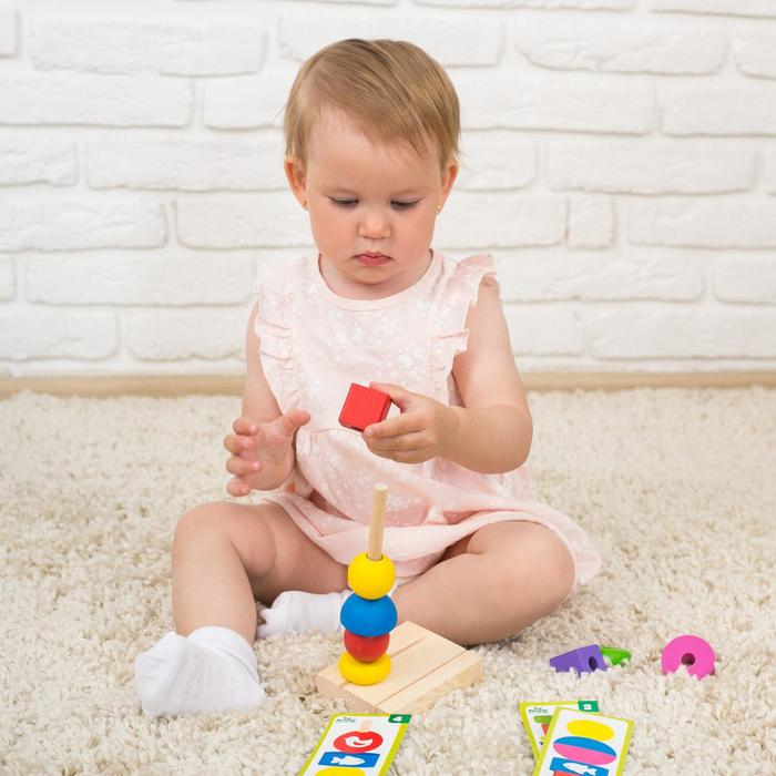 Учитесь счёту: попросите малыша надеть 3 фигурки на основу, снять 1.