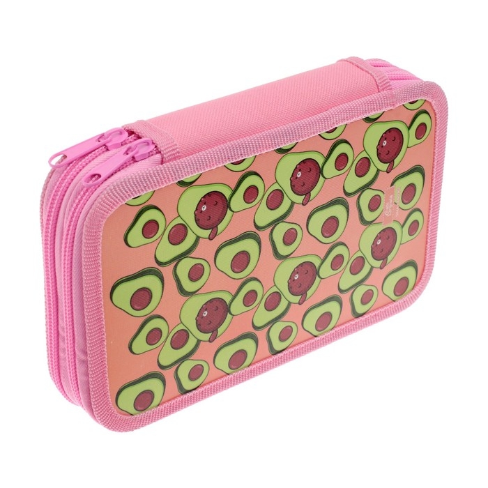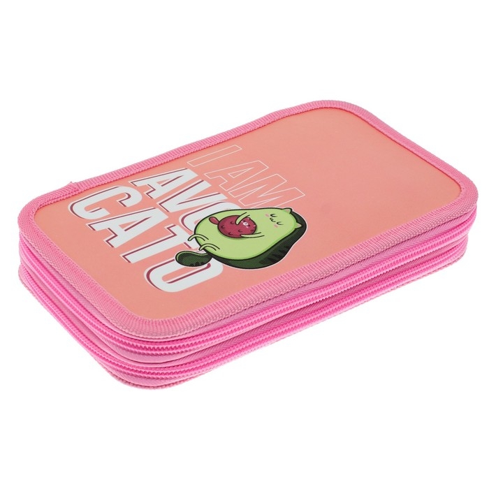 Пенал 2 секции, 125 х 205 х 40 мм, Calligrata 30П26/2 "Авокадо-кот", ламинированный картон