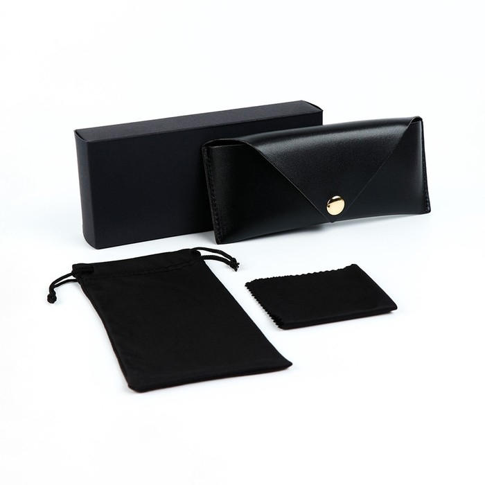 В набор для очков входит: чехол из экокожи, футляр, салфетка для чистки очков из текстиля.