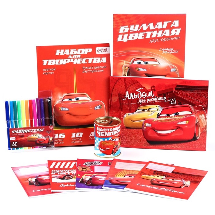 Подарочный набор для первоклассника, 10 предметов, Тачки