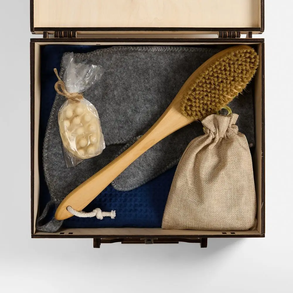 Банный набор Great Heat Therapy позволит полностью перезагрузиться и получить максимум пользы от похода в баню или сауну. Щетка для сухого массажа поможет подготовить кожу и удалить все ороговевшие клетки, а банная шапочка, коврик и рукавица сделают процесс парения комфортным и безопасным. Добавьте контрастный душ с массажным мылом и почувствуйте себя полностью обновленным! Приятно завершить ритуал можно в мягком вафельном килте за чашечкой ароматного чая.