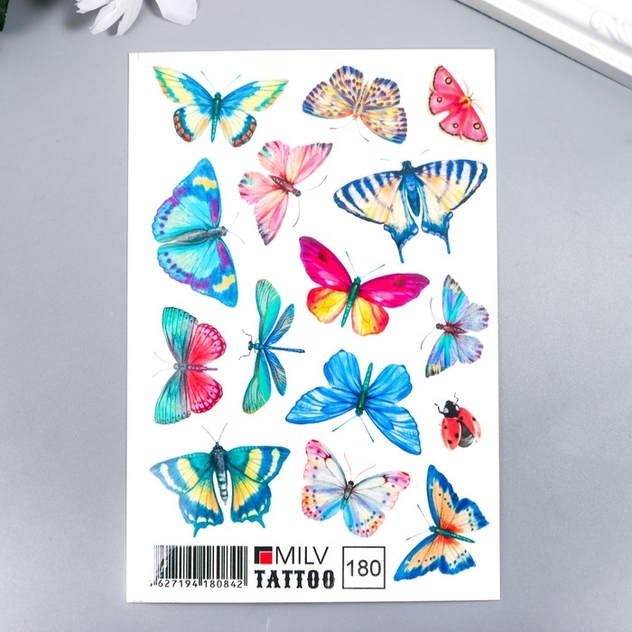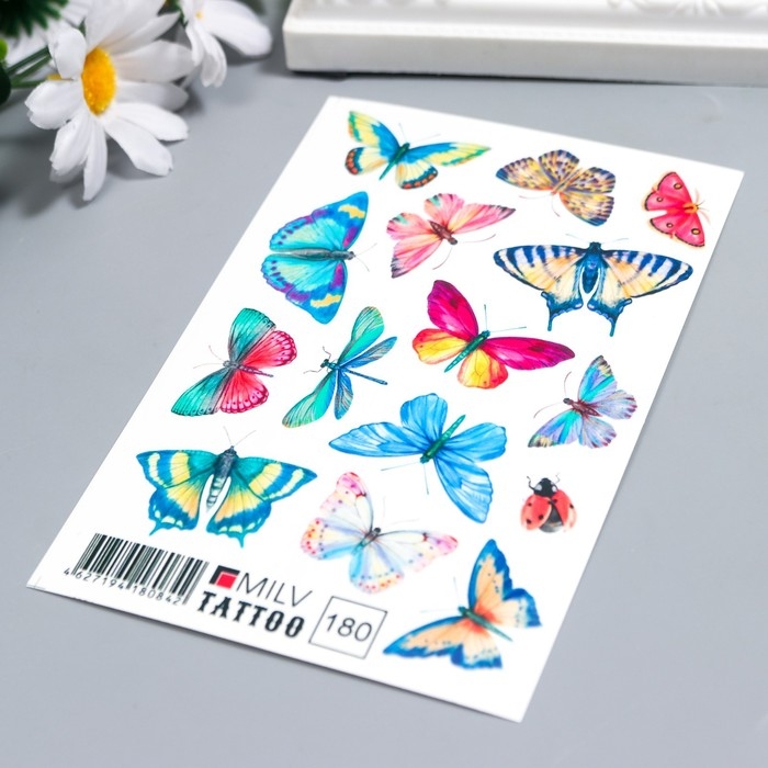 Татуировка на тело "Разноцветные бабочки" 10х15 см