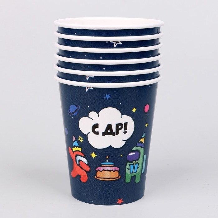 Стакан одноразовый бумажный "С ДР", набор 6 шт, 250 мл