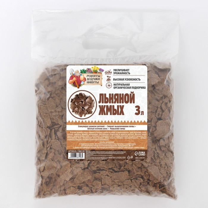 Льняной жмых "Рецепты Дедушки Никиты", 3 л