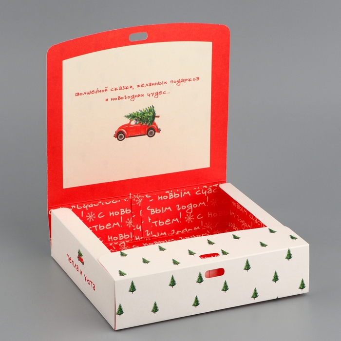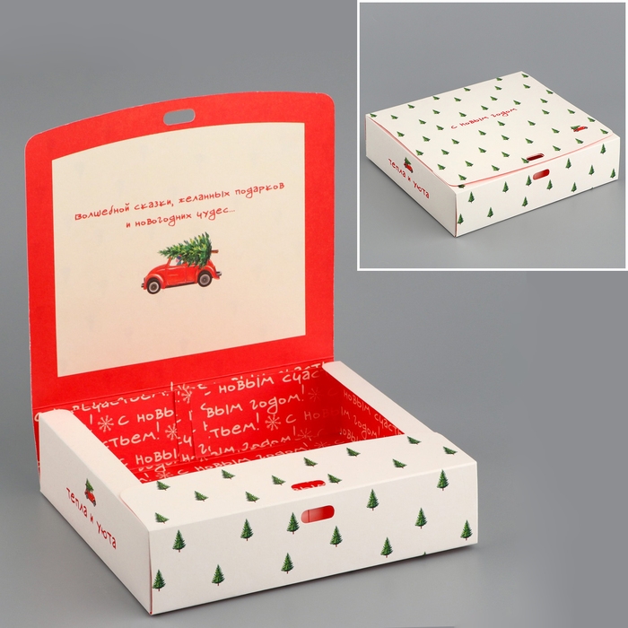 Коробка подарочная новогодняя складная двухсторонняя «С новым годом», 20 х 18 х 5 см, БЕЗ ЛЕНТЫ, Новый год