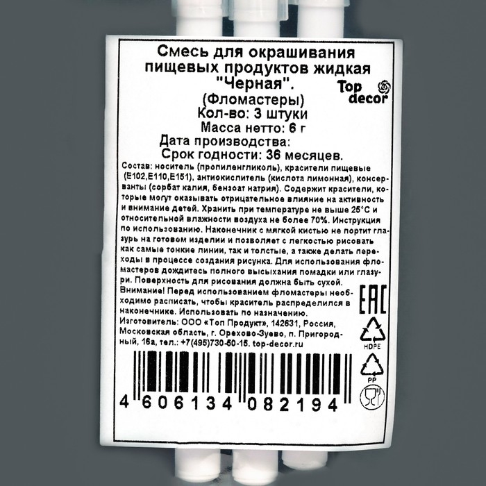 Пищевые маркеры "Черные" , набор из 3 шт.