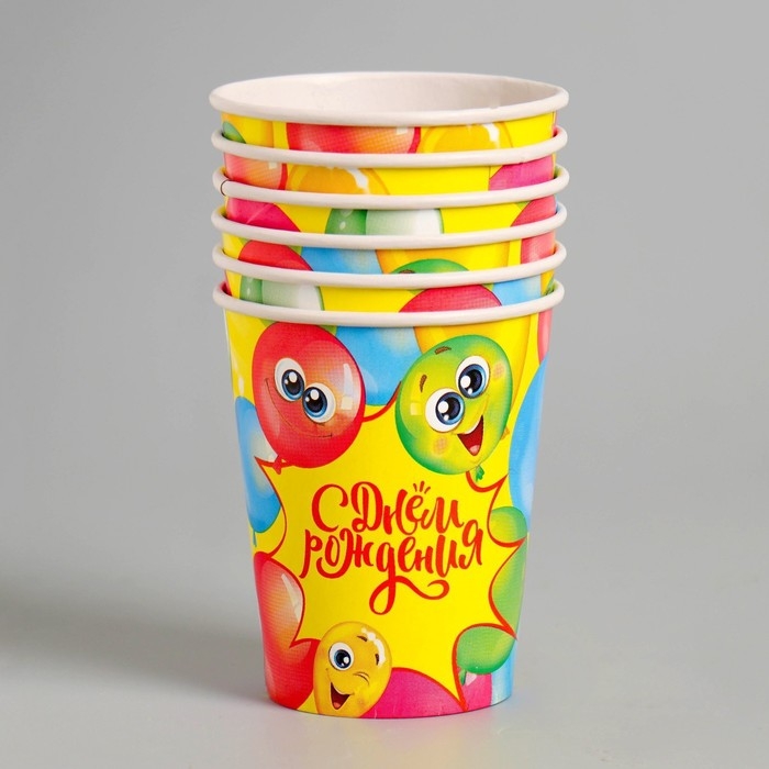 Стакан одноразовый бумажный "С днём рождения" весёлые шары, набор 6 шт, 250 мл