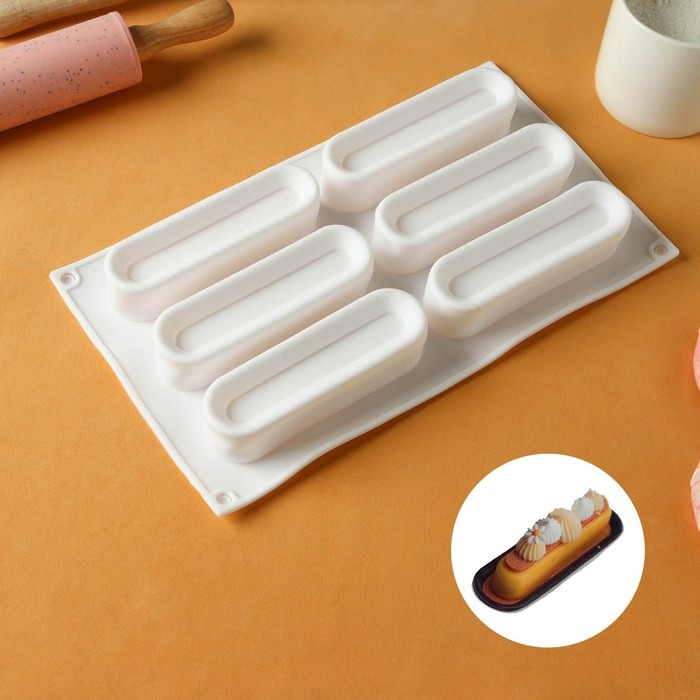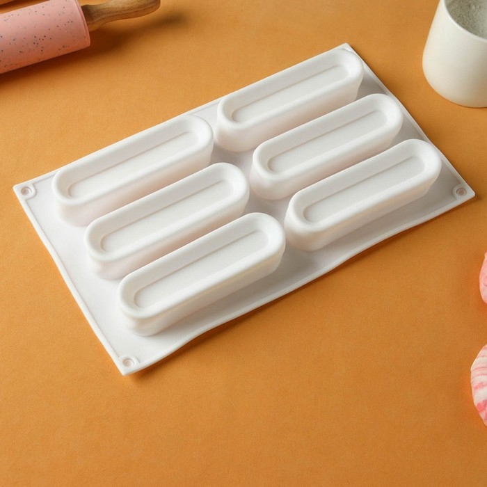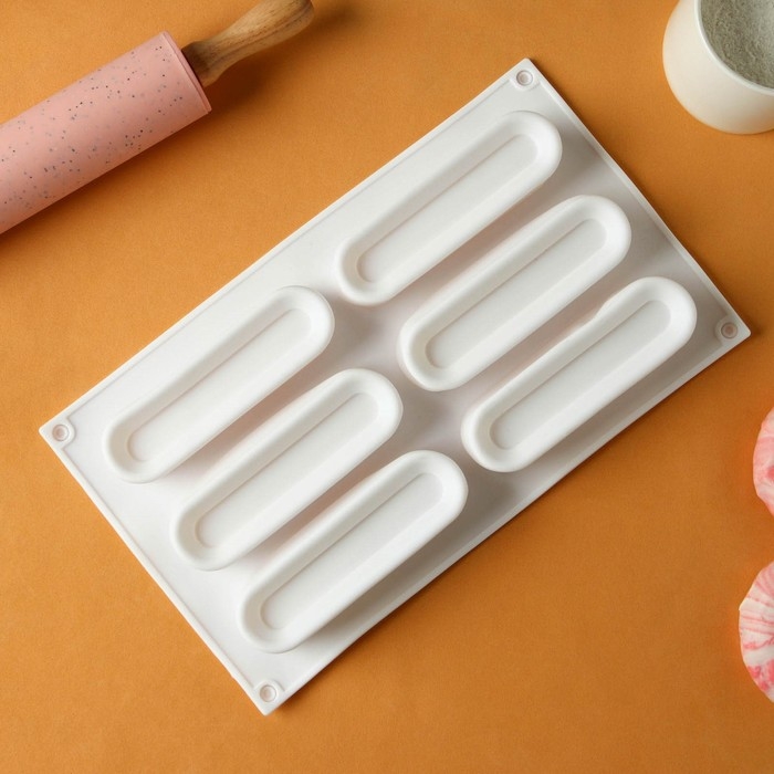 Форма для муссовых десертов и выпечки KONFINETTA «Венеция», силикон, 29,5×17×3 см, 6 ячеек, цвет белый