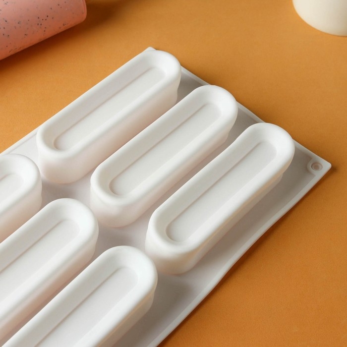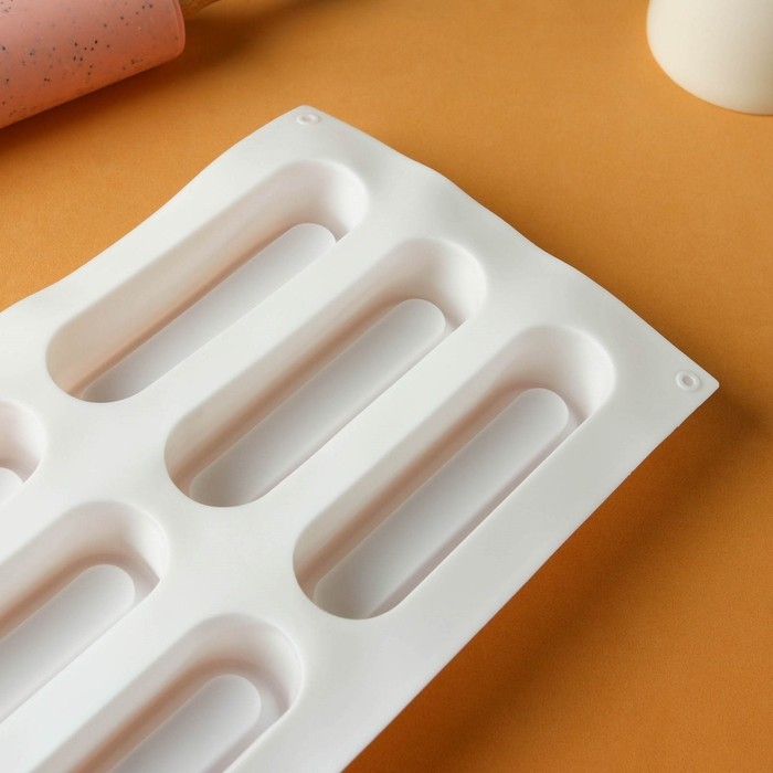 Форма для муссовых десертов и выпечки KONFINETTA «Пуэнти», силикон, 30×17,5×1,5 см, 8 ячеек (5,5×1,5 см), цвет белый