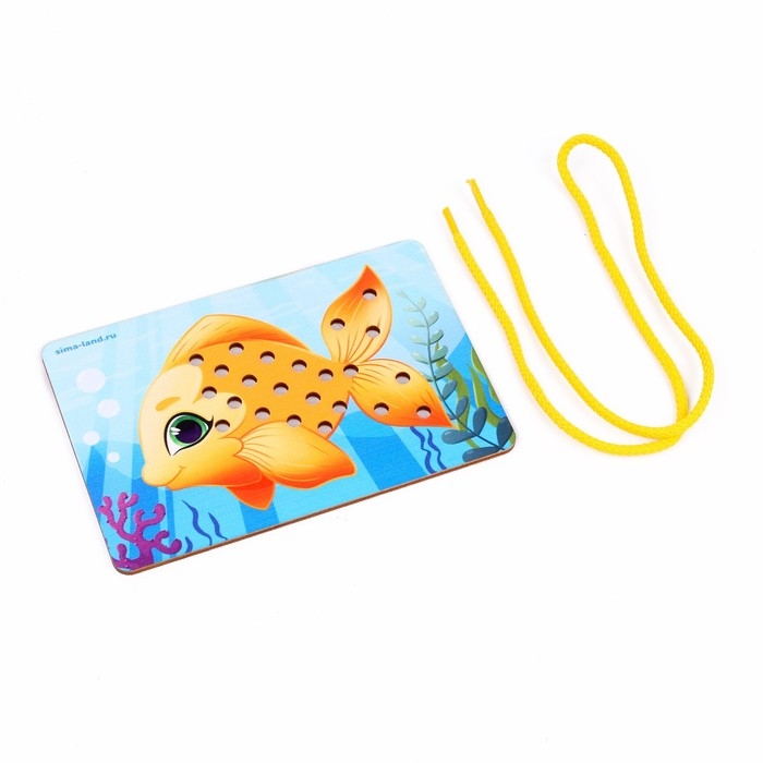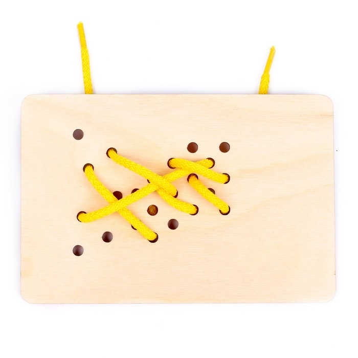 - Задача малыша — продевать шнурок сквозь отверстия в игровом поле.
