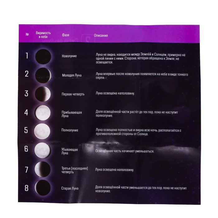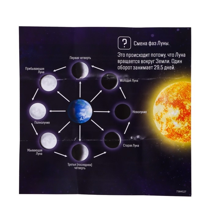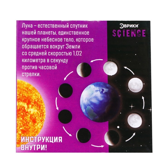 С набором для опытов «Эврики» ребёнок соберёт макет Луны, которая вращается вокруг Земли, узнает, за какое время она делает полный оборот вокруг нашей планеты, и изучит её фазы. Луна — это единственный естественный спутник нашей планеты, который скрывает в себе не мало тайн!