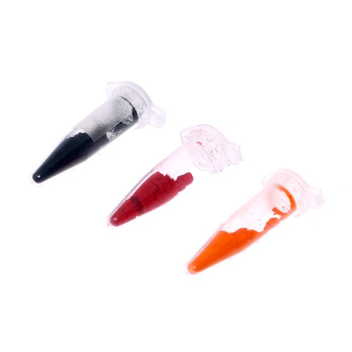- Возьмите три стакана (в комплект не входят) и приготовьте в них три цветных раствора.