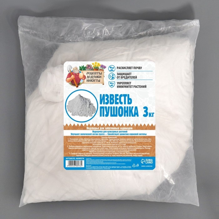 Известь пушонка "Рецепты Дедушки Никиты" 3 кг