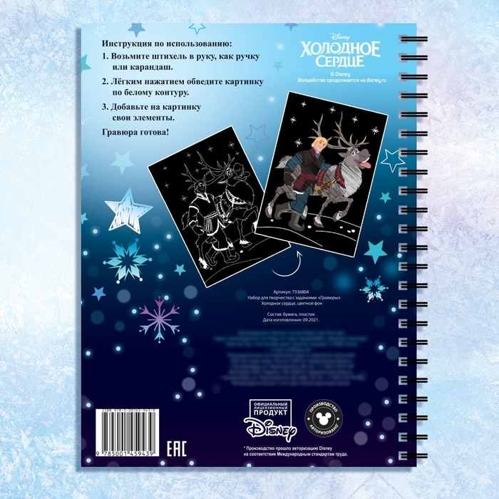 Набор для творчества с заданиями «Гравюры», цветной фон, 5 гравюр, Холодное сердце