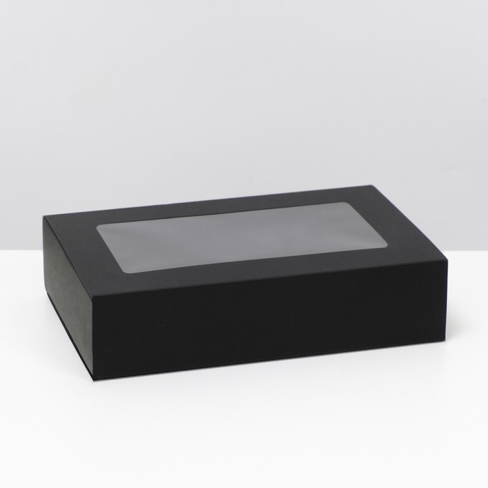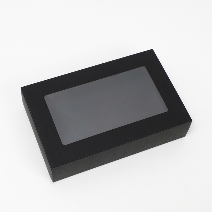 Коробка складня, пенал, с окном, черная, 25 х 16 х 6 см