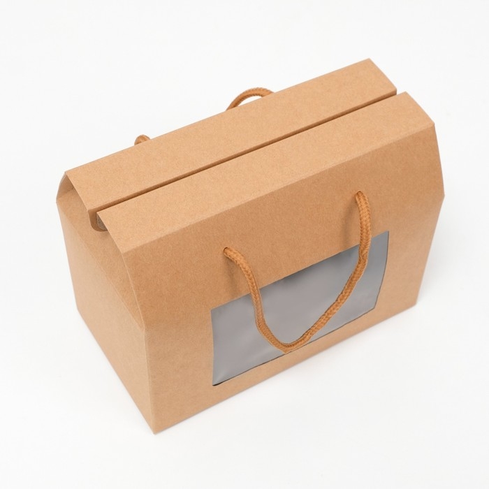 Коробка-пакет, с окном и ручками, крафтовая, 20 х 15 х 11 см