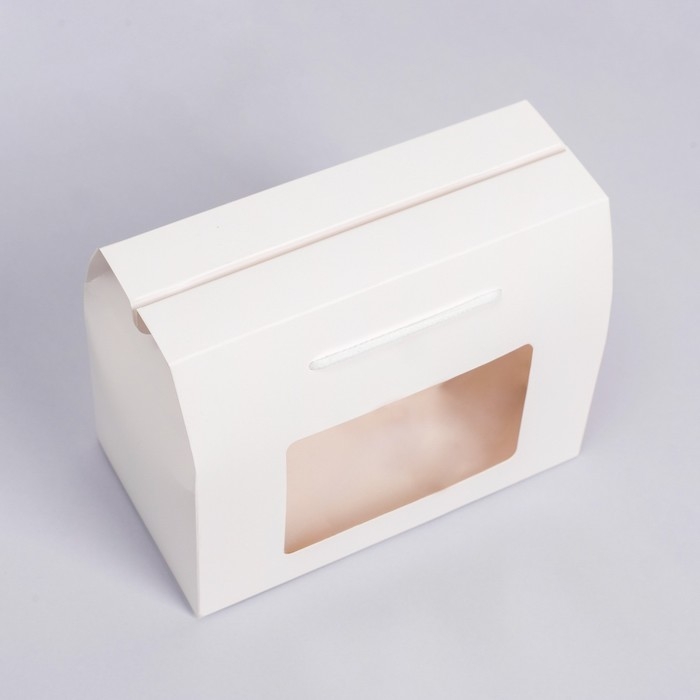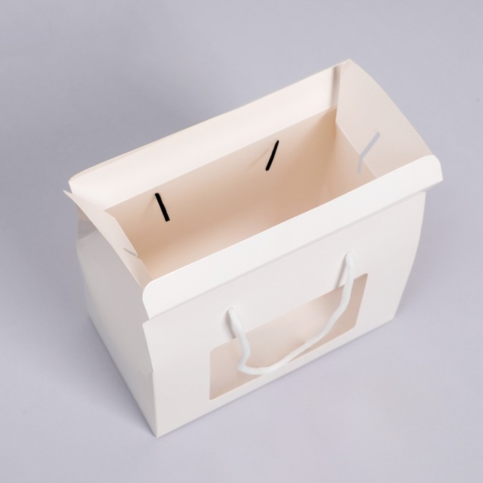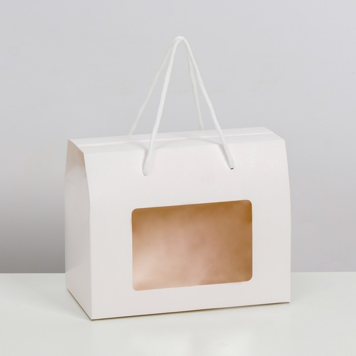 Коробка-пакет, с окном и ручками, белая, 20 х 15 х 11 см