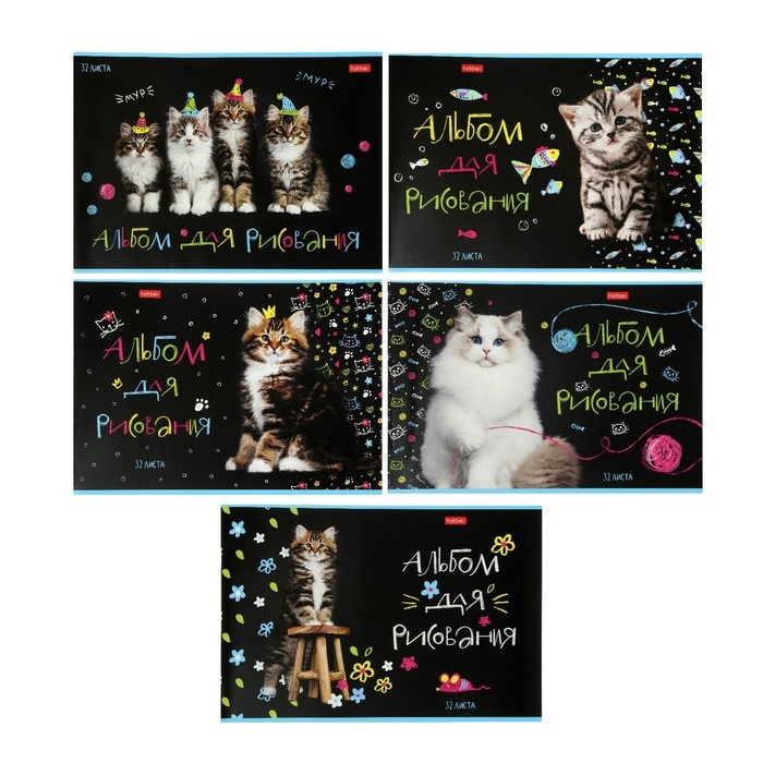 Альбом для рисования А4, 32 листа на скрепке "МУРчат коты", обложка мелованный картон, блок 100 г/м2, МИКС