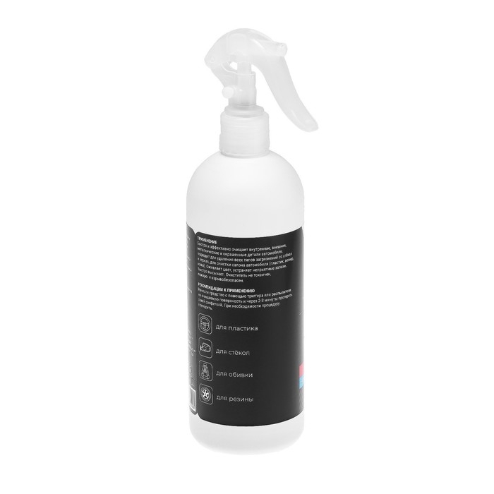 Быстро и эффективно очищает внутренние, внешние, металлические и окрашенные детали автомобиля, подходит для удаления всех типов загрязнений со стёкол и зеркал, для очистки салона автомобиля (пластик, велюр, кожа).