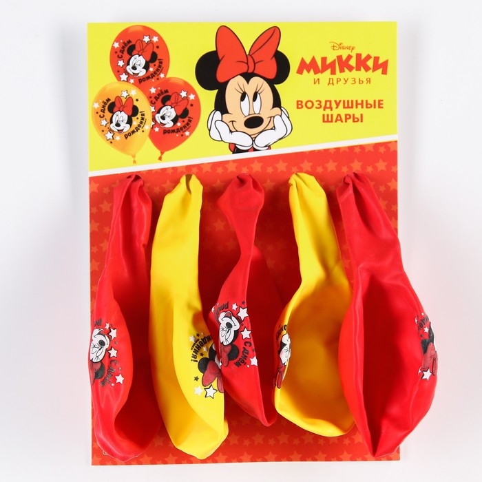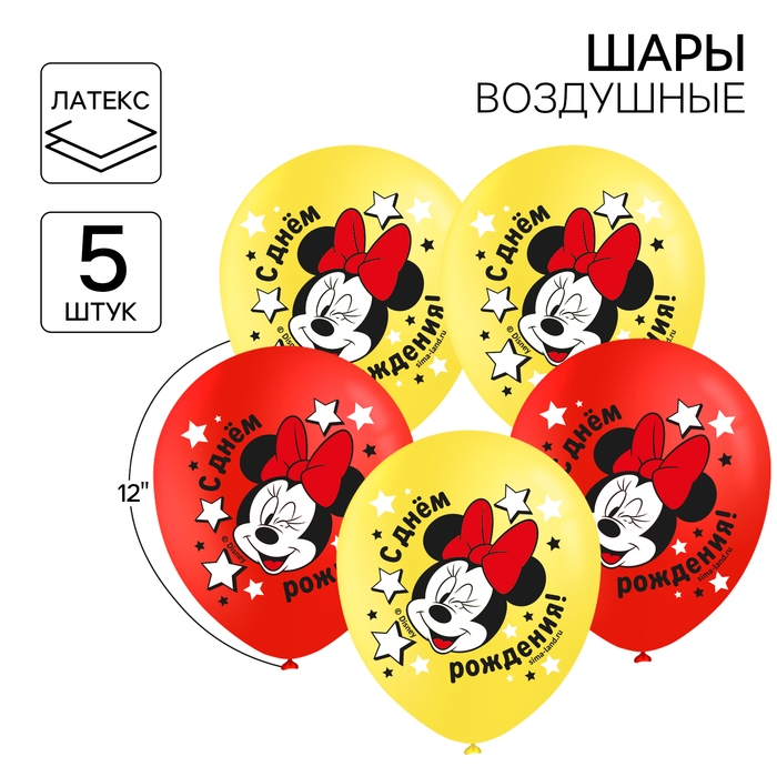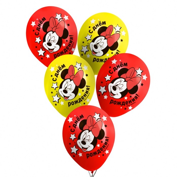 Шар воздушный "С Днем рождения!" 12 дюйм, латексный, 5 штук, Минни Маус