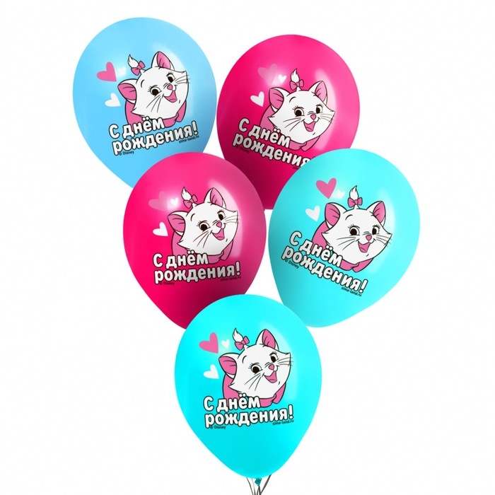Шар воздушный "С Днем рождения!", 12 дюйм, латексный, 5 штук, Коты Аристократы