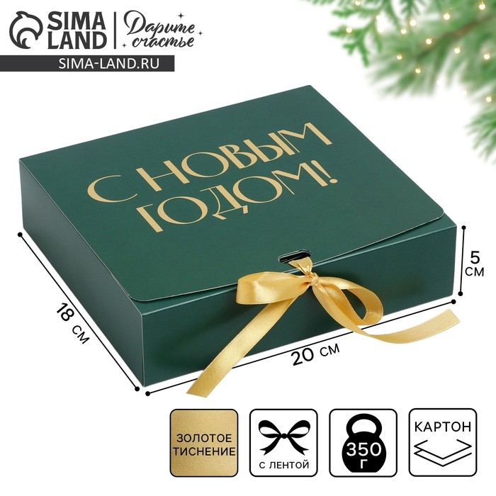 Коробка подарочная новогодняя складная «С новым годом», тиснение, зелёный, 20 х 18 х 5 см, Новый год