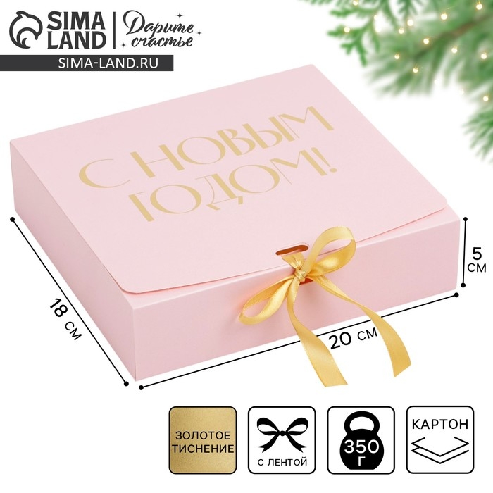 Коробка подарочная новогодняя складная «С новым годом», тиснение, розовый, 20 х 18 х 5 см, Новый год