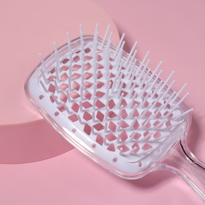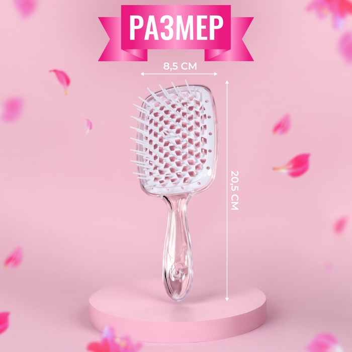 Расчёска массажная, широкая, вентилируемая, 8,5 × 20,5 см, PVC коробка, цвет прозрачный