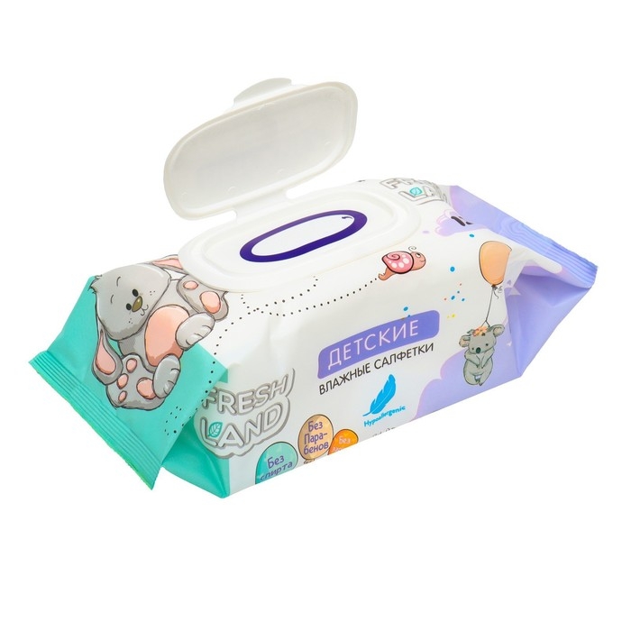Влажные салфетки для детей "Freshland" с антибактериальным эффектом, 100 шт