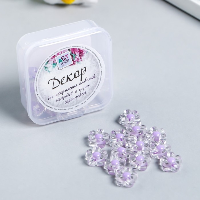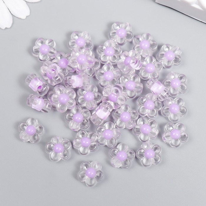 Бусины пластик "Цветок с фиолетовой серединкой" глянец 20 гр 0,6х1,2х1,2 см