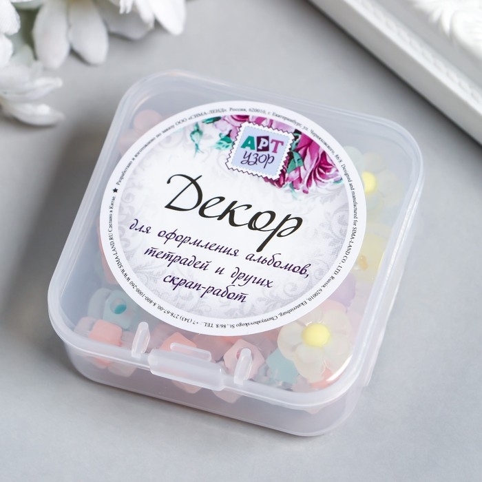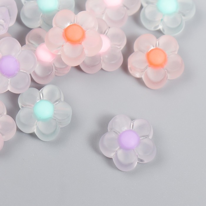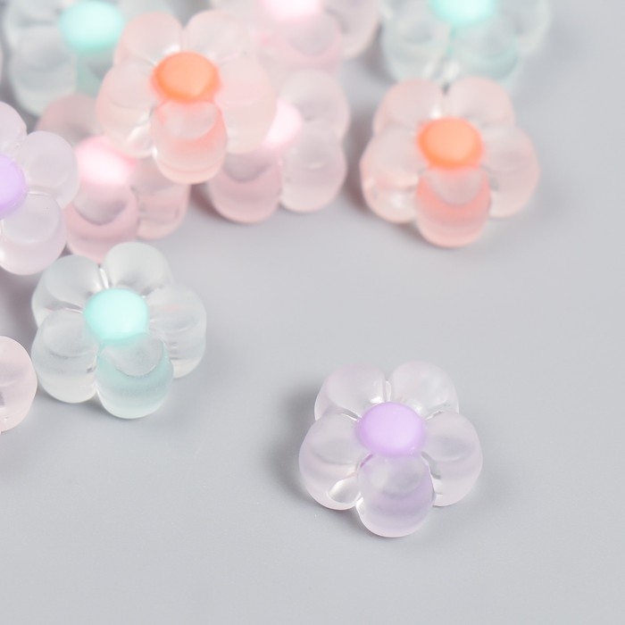 Бусины пластик "Цветок с цветной серединкой - ассорти" матовые 20 гр 0,6х1,2х1,2 см