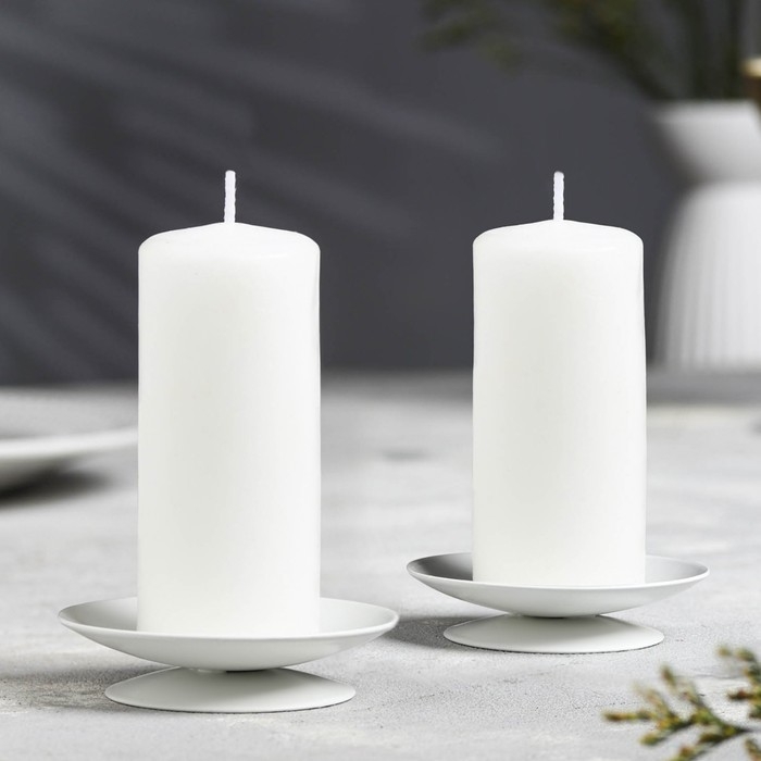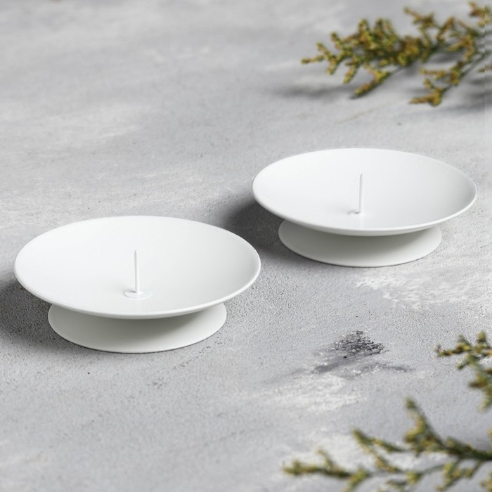 Подсвечник металл "Лотос", 7,5х2 см, набор 2 шт, белый