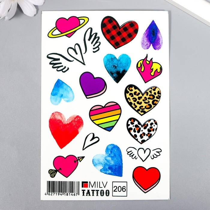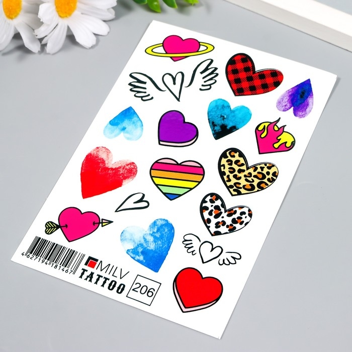 Татуировка на тело "Разные сердечки" 10х15 см
