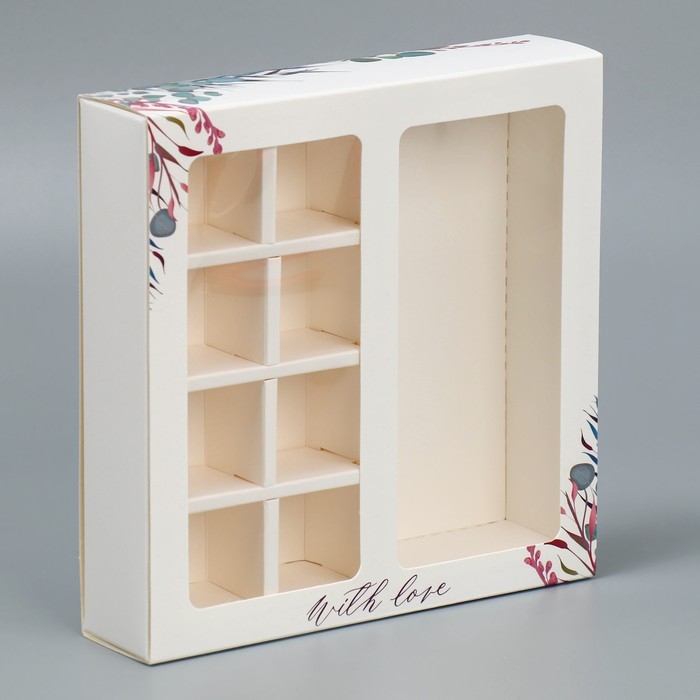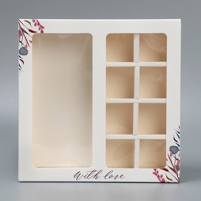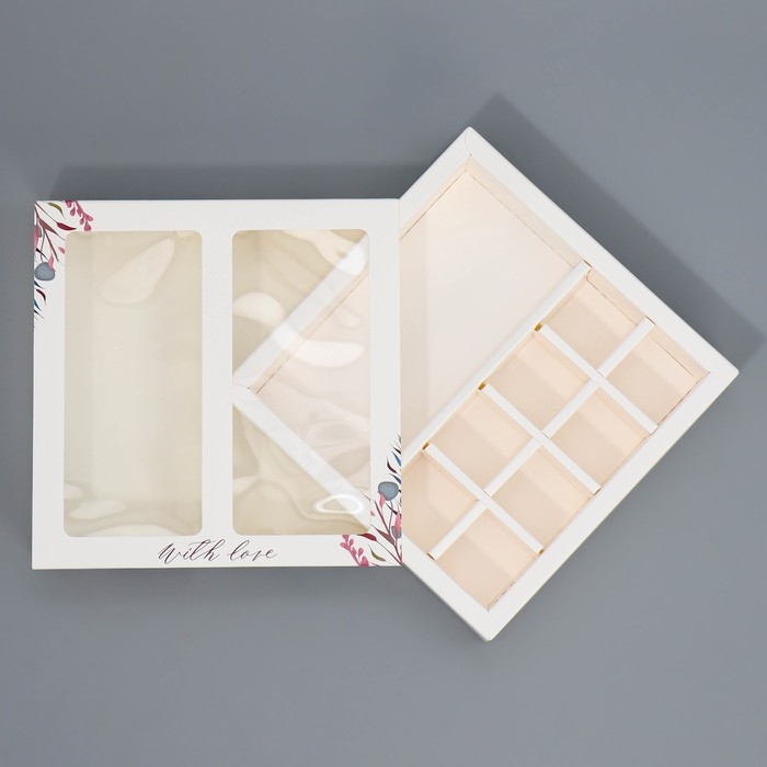 Коробка под 8 конфет и шоколад с ячейками, кондитерская упаковка, With Love 18 х 18 х 4 см
