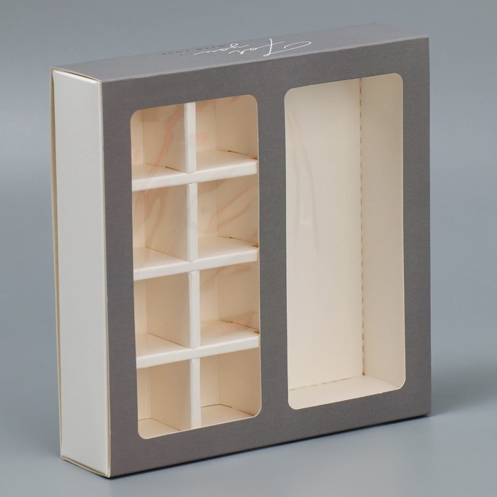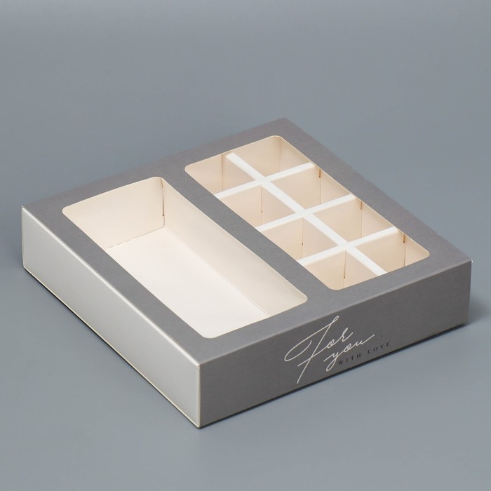 Коробка под 8 конфет и шоколад с ячейками, кондитерская упаковка, For you 18 х 18 х 4 см