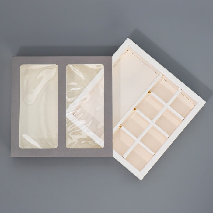 Коробка для 8 конфет + шоколад, с окном, белая, 17,7 х 17,8 х 3,8 см. Кондитерская упаковка