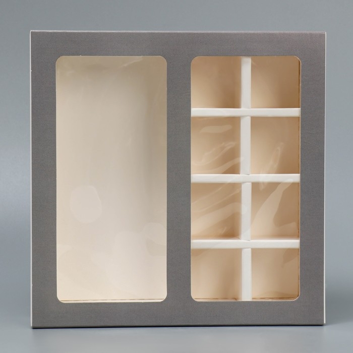 Коробка для 8 конфет + шоколад, с окном, крафт, 17.7×17.85×3.85 см