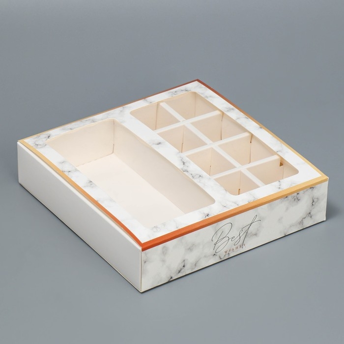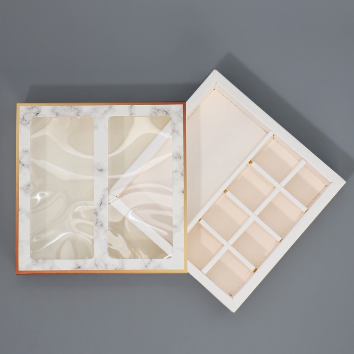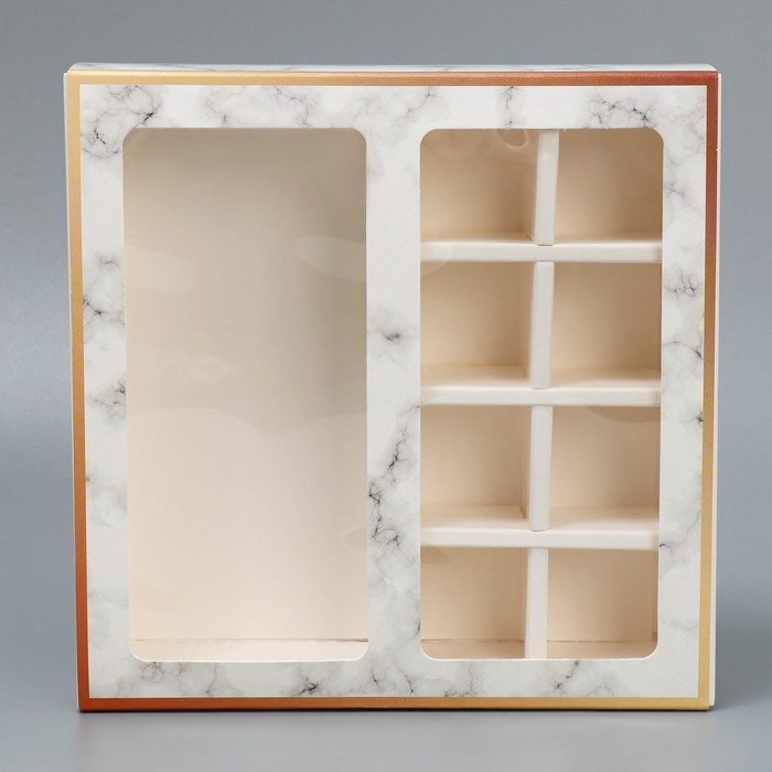 Коробка под 8 конфет и шоколад с ячейками, кондитерская упаковка, «Мрамор» 18 х 18 х 4 см