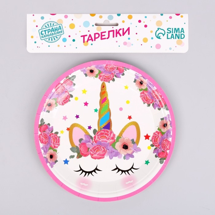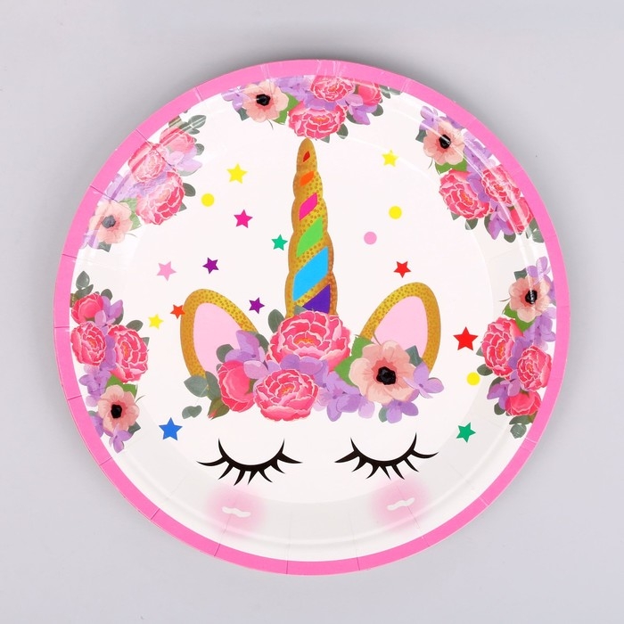 Тарелка бумажная одноразовая «Единорог», 18 см, набор 6 шт.