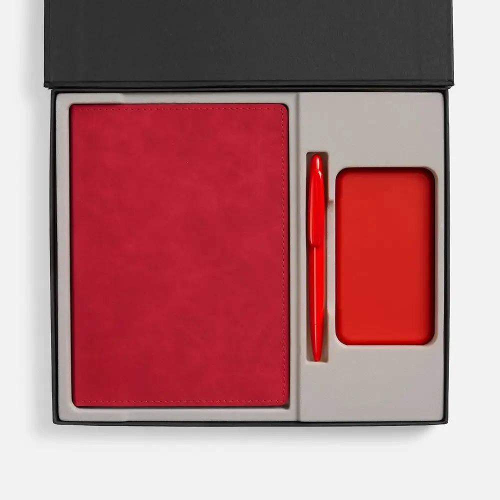 Набор с внешним аккумулятором позволит всегда оставаться на связи, а бессменная офисная классика — ежедневник и ручка —помогут направить энергию в правильное русло!