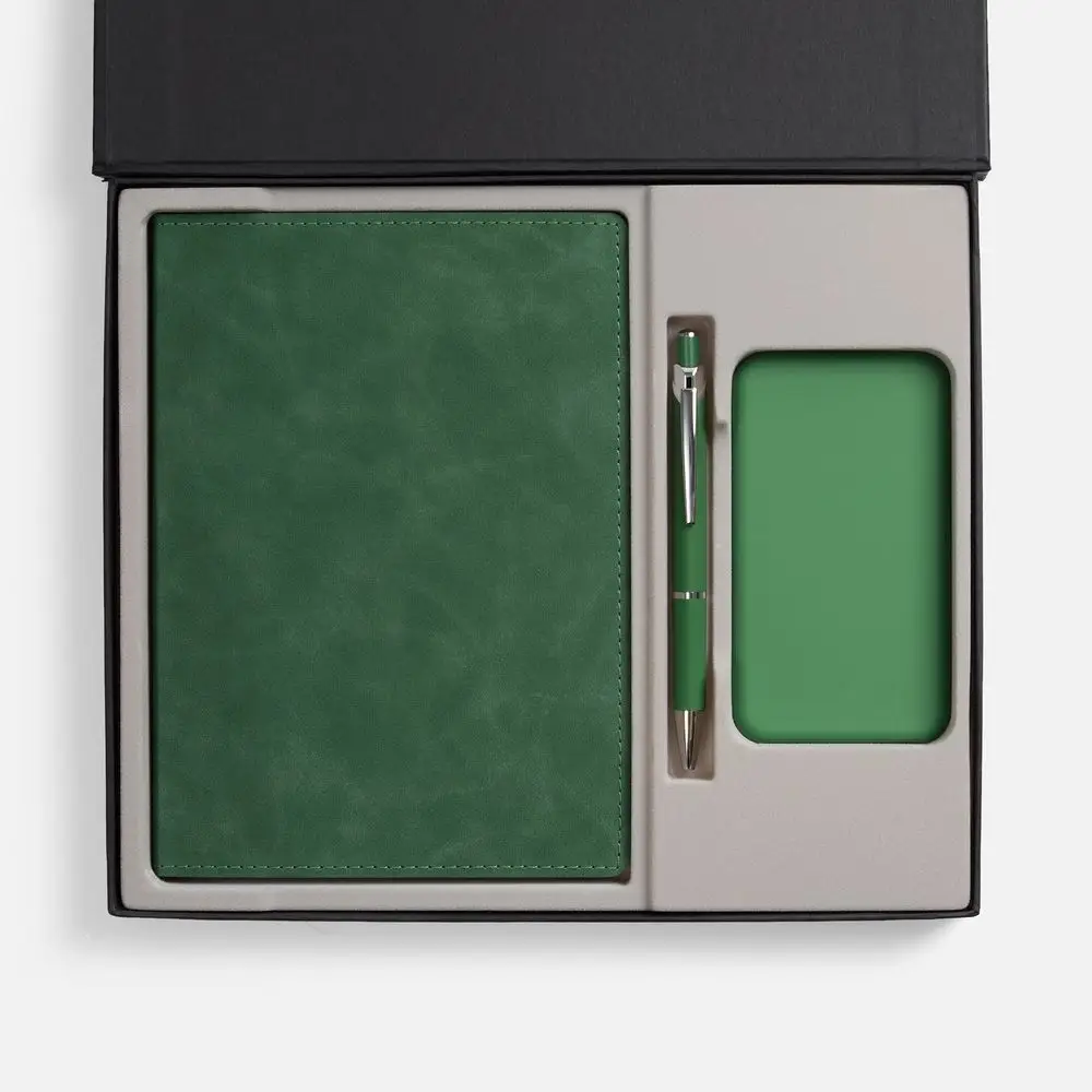 Набор с внешним аккумулятором позволит всегда оставаться на связи, а бессменная офисная классика — ежедневник и ручка —помогут направить энергию в правильное русло!