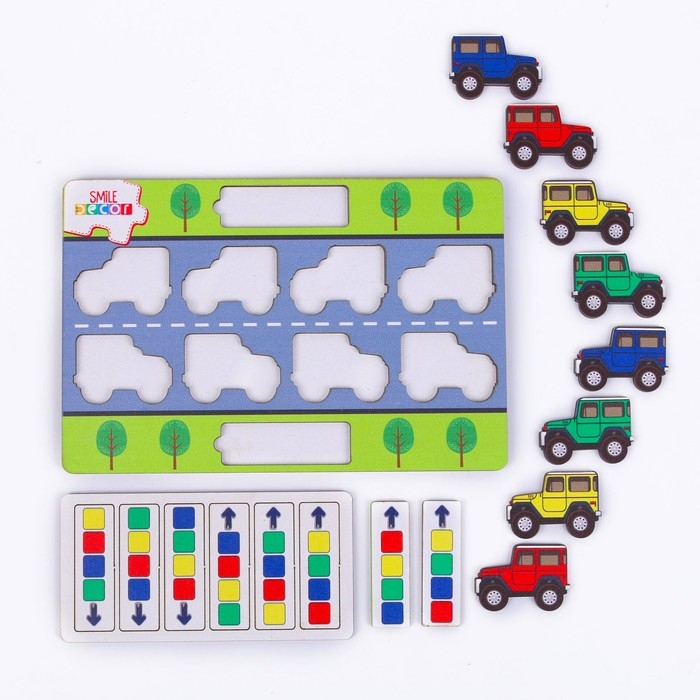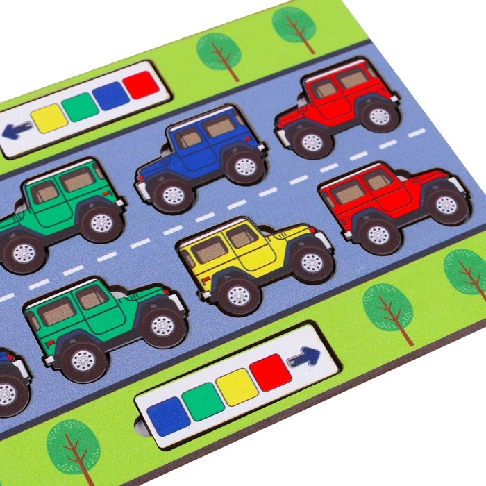 Игра «Дорожное движение» Предложите ребёнку использовать все фигурки машин, чтобы разместить их на дороге в пределах рамки-основания. Это упражнение поможет развить пространственное мышление и координацию.