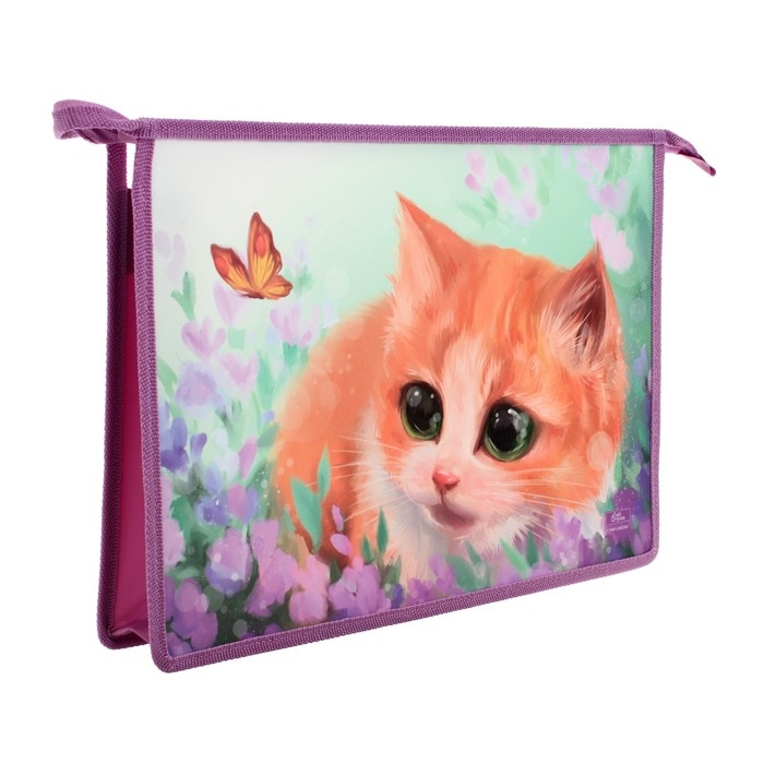 Папка для тетрадей А4, 325 х 230 х 55 мм, молния сверху, пластиковая, ПМ-А4-29 Calligrata "Котик"