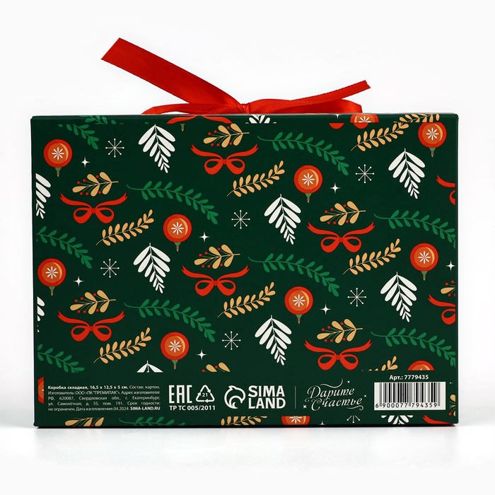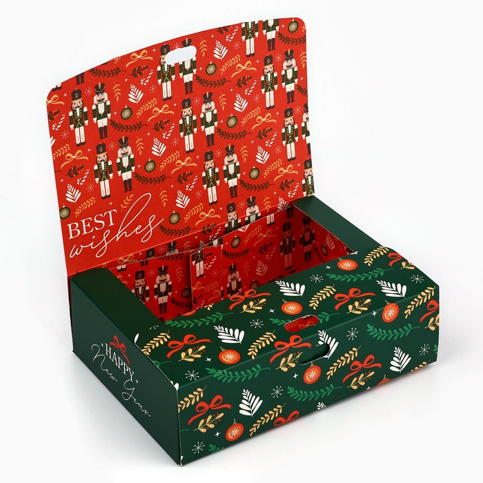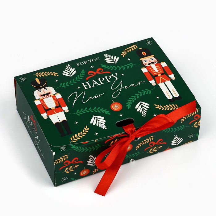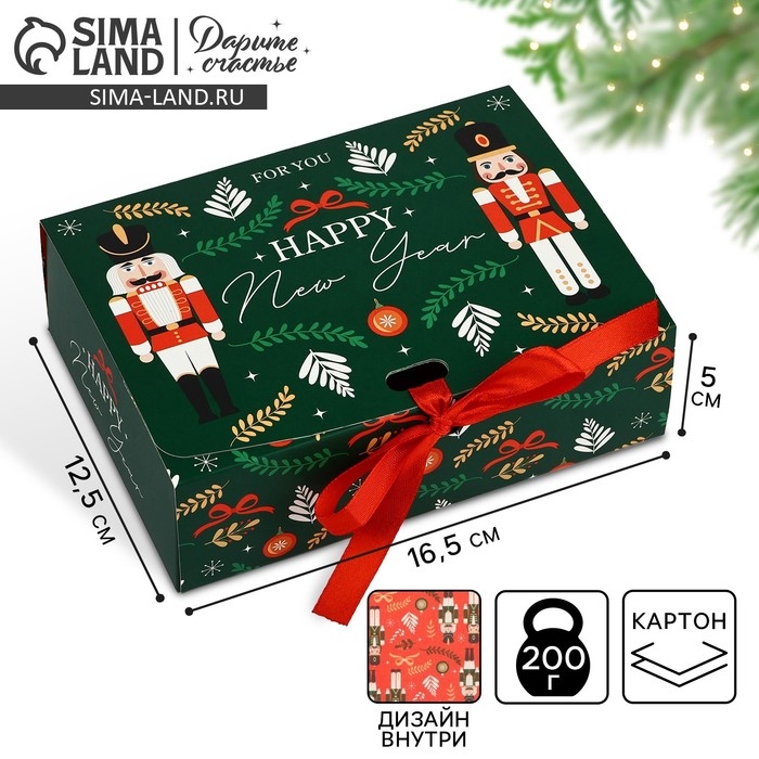 Коробка подарочная новогодняя складная двухсторонняя «Щелкунчик», 16.5 х 12.5 х 5 см, БЕЗ ЛЕНТЫ, Новый год